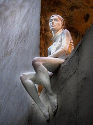 Elle ne bouge plus. Ici. Là-haut. Personne ne peut la voir. Elle est évanouie d'un monde de mouvement. Comme une femme de pierre dans une danse effrénée.
